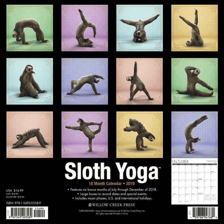 Source : www.amazon.comAmazon.com: Sloth Yoga 2023 Wall Calendar: 9781549227738: Willow